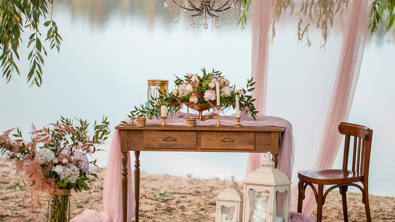 No entanto, podemos fornecer uma estimativa geral com base em cinco ideias de decoração comuns para diferentes ambientes de casamento: ambiente fechado, campo e praia.