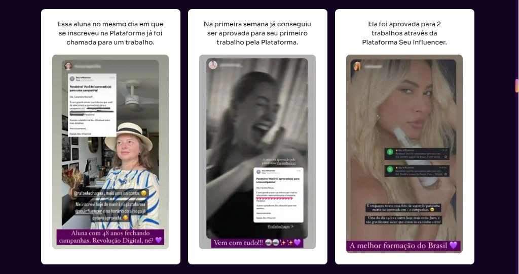 Você não só receberá uma formação completa e prática, mas também terá acesso instantâneo a oportunidades de emprego através da plataforma, Seu Influencer.