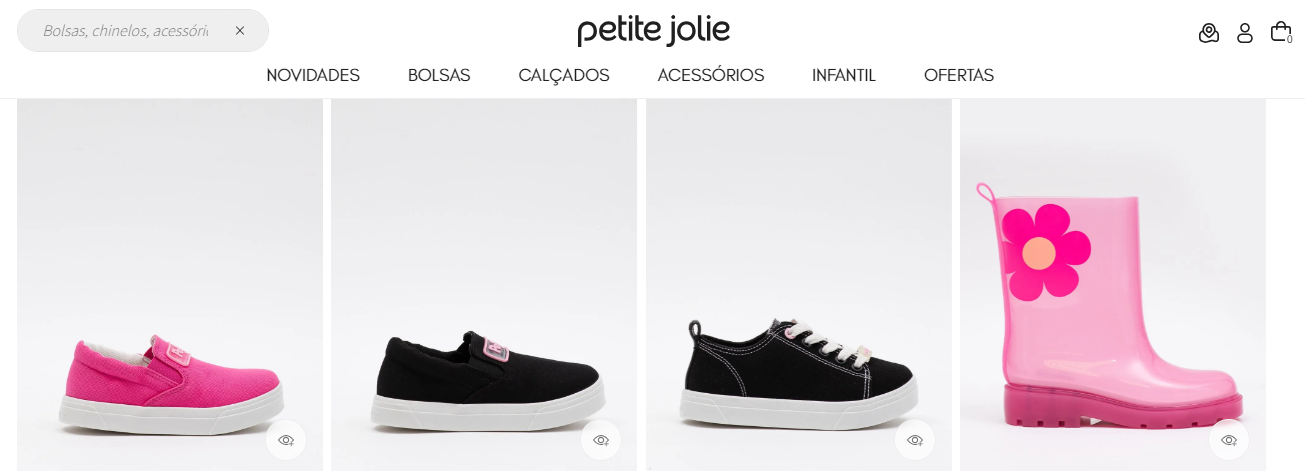 Acessórios: Além de calçados e bolsas, a Petite Jolie também oferece uma linha de acessórios que inclui desde óculos de sol até carteiras e bijuterias.