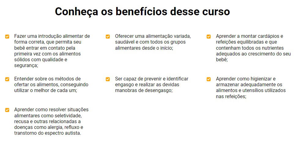 Benefícios Claros: Ao aderir ao nosso CURSO, vocês terão acesso a ferramentas práticas, receitas irresistíveis e conselhos especializados que tornarão a hora das refeições um momento de alegria e bem-estar para toda a família.