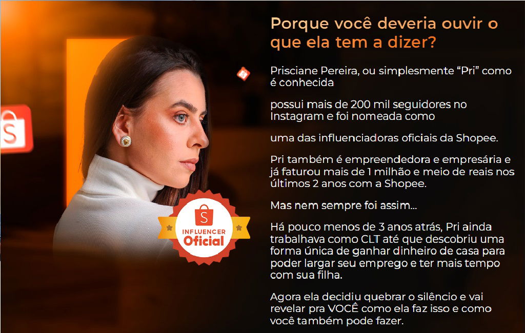 Junte-se a milhares de empreendedores de sucesso que estão dominando o mundo do marketing de afiliados com o Curso Método Shopee Lucrativo da Prisciane Pereira.
