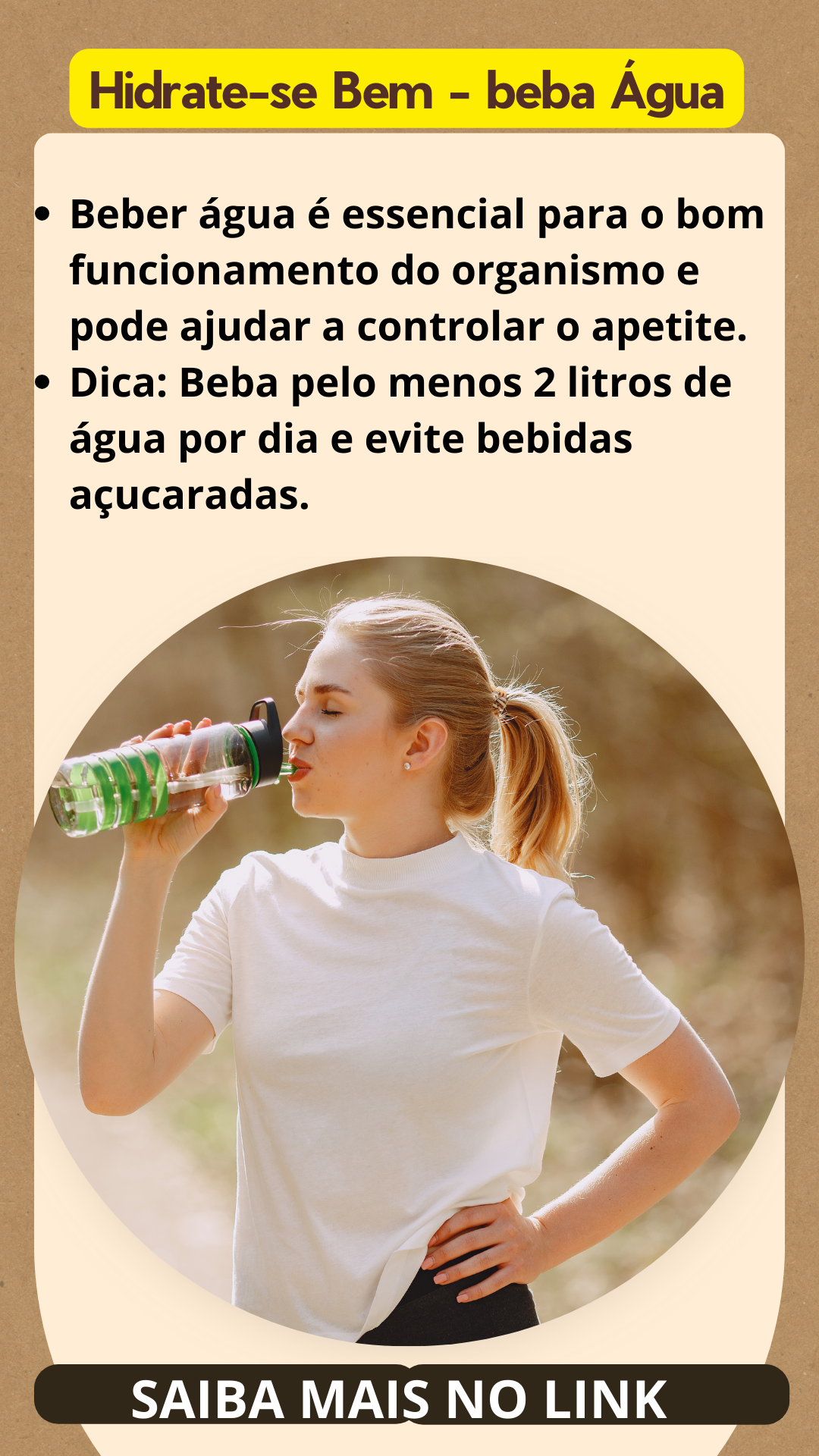 Beber água é essencial para o bom funcionamento do organismo e pode ajudar a controlar o apetite.