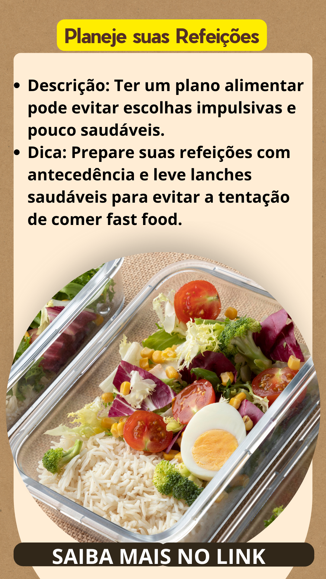 Planejar suas refeições com antecedência pode evitar escolhas impulsivas e pouco saudáveis.