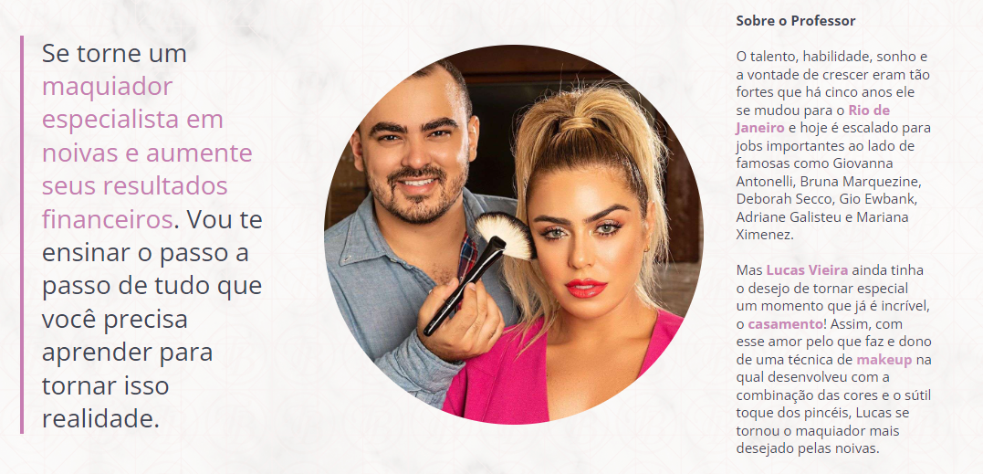 Ao escolher Lucas Vieira como seu guia no mundo da maquiagem, você não apenas terá a oportunidade de aprender técnicas avançadas, mas também será inspirado por sua paixão contagiante e sua dedicação ao aprimoramento constante.