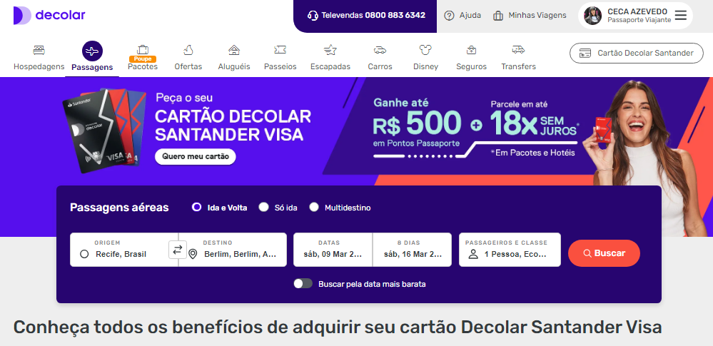 Iremos deixar aqui também uma dica sobre a Decolar.com.