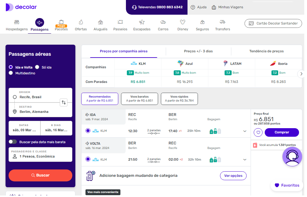 - Facilidade de Pagamento: A Decolar oferece diferentes formas de pagamento, incluindo cartão de crédito, boleto bancário e parcelamento, tornando mais acessível para os clientes pagar por suas viagens de acordo com suas necessidades financeiras.